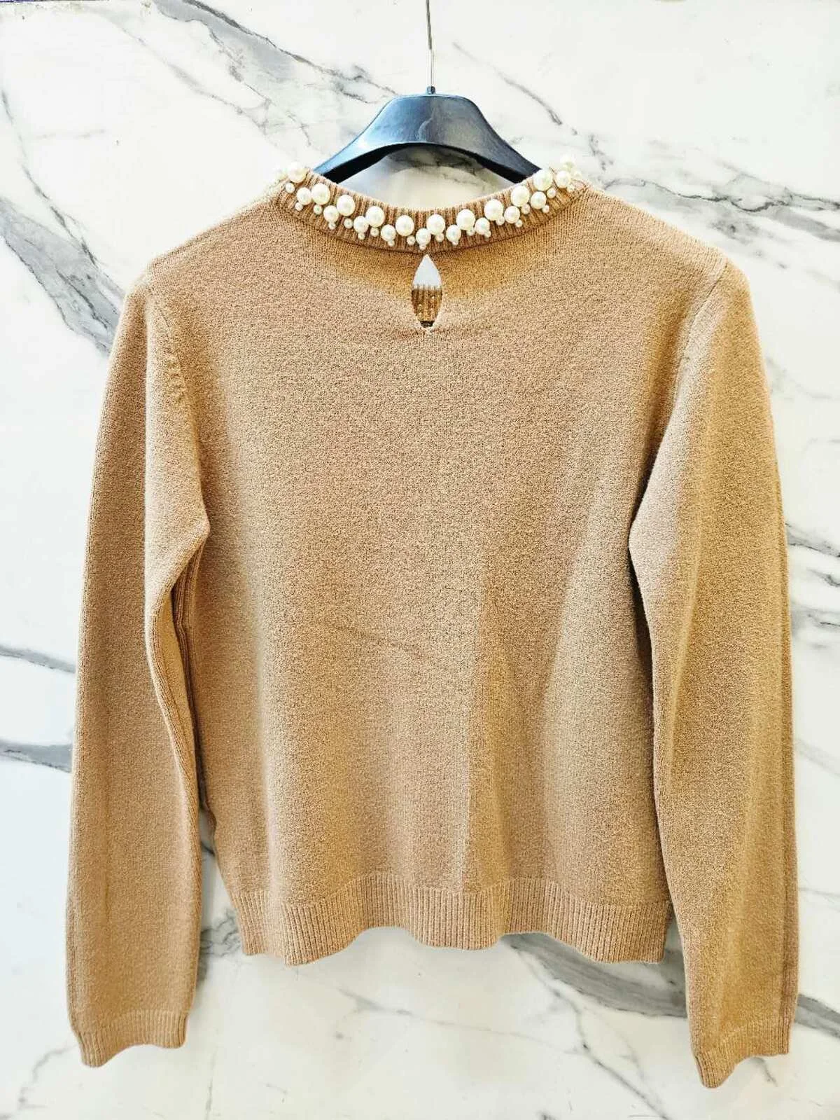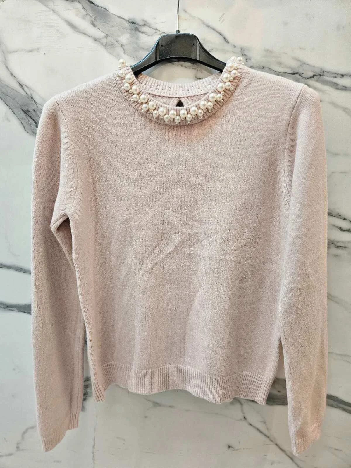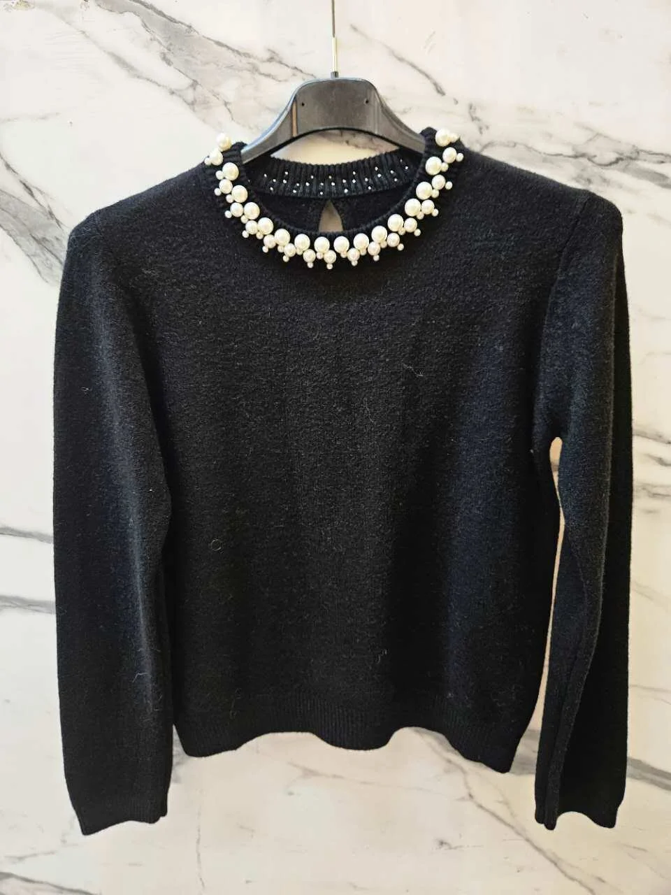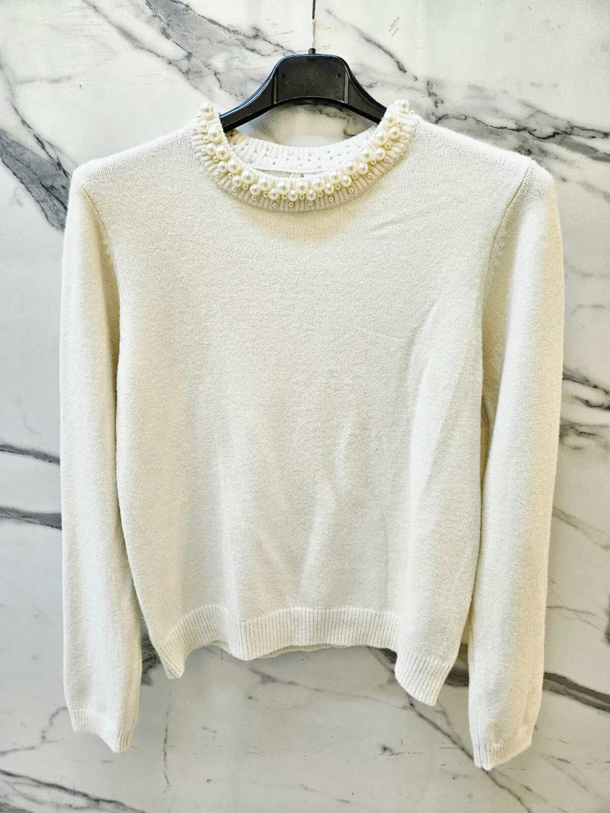 Tämä klassinen neulepaita saa elegantin viimeistelyn kauniista helmikoristeista kauluksessa. Pehmeä ja kevyesti laskeutuva materiaali tuntuu mielyttävältä päällä ja tekee paidasta helpon valinnan niin arkeen kuin siisteihin tilaisuuksiin.