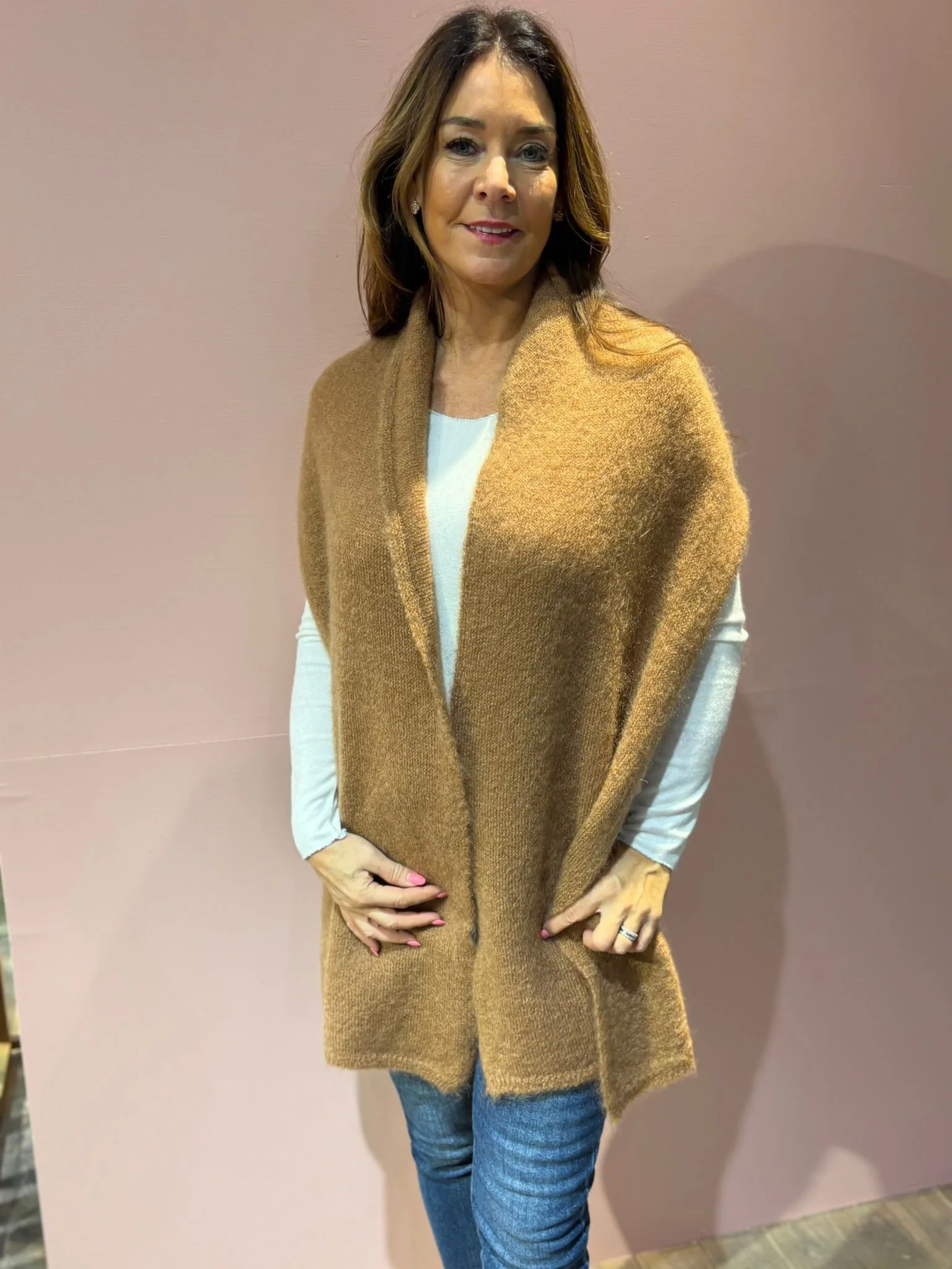 Lämmin kamelinruskea, pehmeästi laskeutuva huivi